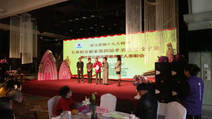 10月31日上午,长春市柏合助老志愿者协会举办了“长春柏合新家第四届孝亲敬老饺子宴”暨志愿公益最美老人表彰大会,在此次大会上评选出30位最美老人并为他们颁发荣誉证书。我协会派出六名优秀志愿者代表爱心引力青年志愿者协会承担宴会的礼仪接待与签到登记管理的任务。 长春市柏合助老志愿者协会是专门为孤寡老人、失独老人、空巢老人和老兵服务的公益组织,本次饺子宴是在柏合新家常态化为老人们送温暖、送亲情、送快乐的志愿服务基础之上的一次升华。参加宴会的每一位老人脸上都洋溢着幸福,精神需求得到了满足。 我协会的六位志愿者和其他为本次宴会做服务的志愿者一起工作,贯彻落实党的十九大精神,出色地保障了宴会的正常进行,展现出新的精神状态和奋斗姿态,满足老人们的物质与精神追求,为我国的精神文明建设贡献自己的一份力量。